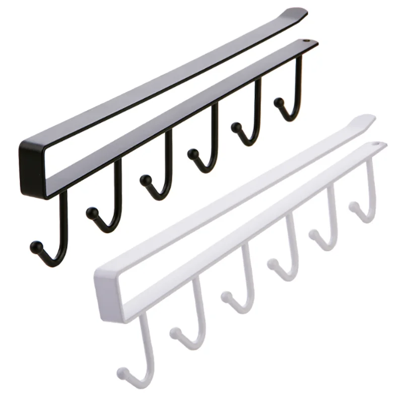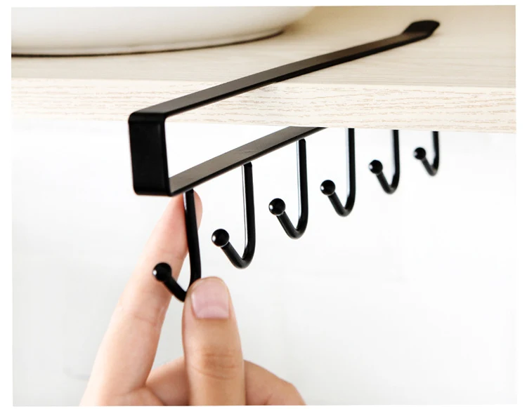 Iron 6 Hooks Storage Shelf Wardrobe Cabinet Metal Under Shelves Mug Cup Hanger Bathroom Kitchen Organizer Hanging Rack Holder